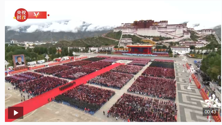 21日上午,习近平总书记在拉萨市布达拉宫广场出席西藏自治区成立60周年庆祝大会,同西藏各族各界干部群众约2万人共同欢聚,热烈庆祝西藏自治区成立60周年。