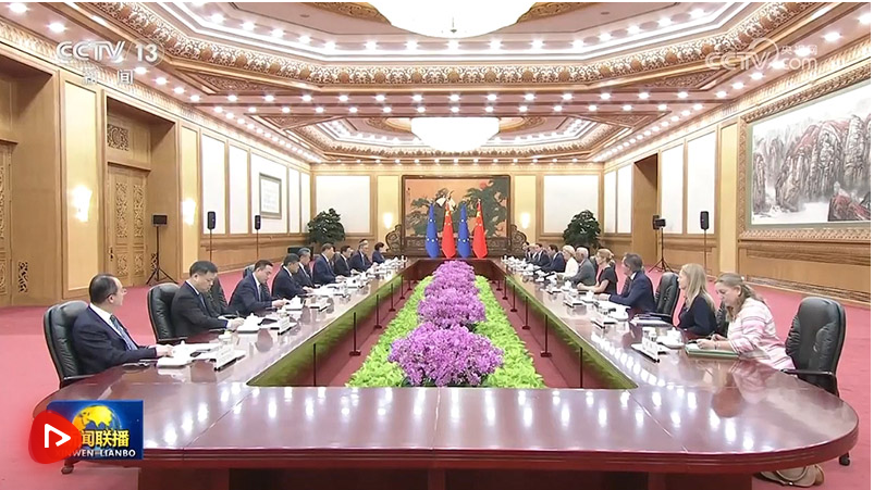 新华社北京7月24日电 7月24日上午,国家主席习近平在北京人民大会堂会见来华举行第二十五次中国—欧盟领导人会晤的欧洲理事会主席科斯塔和欧盟委员会主席冯德莱恩。 习近平指出,今年是中欧建交50周年,也是联合国成立80周年,中欧关系又站在一个关键历史节点。